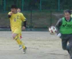 実力的には若干劣る我が伏見シニアですが体を張ったディフェンスで得点を許しません。それどころか相手のゴールキックを胸で「ドスン」と受け止めた川原をフォローした兼森のミドルシュートがネットを揺さぶりました!