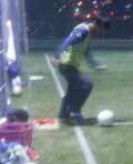 ちょっと参加者が減少気味です。今日はOBを入れて13名、3チーム編成で2チームはキーパーを休みチームからレンタルします。